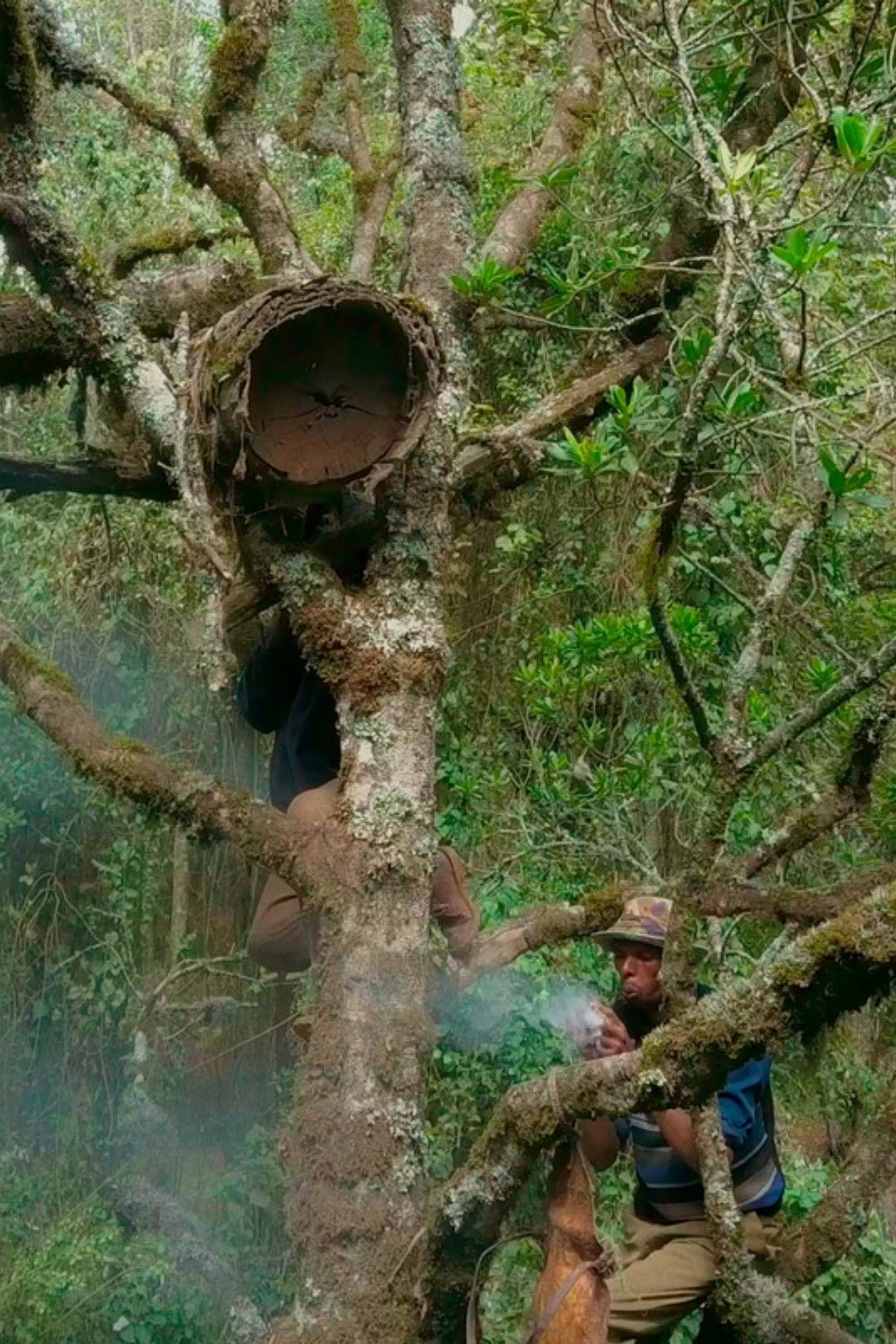 Three Maasai men harvest honey in Kenya’s Mau Forest in this carefully composed portrait of often-invisible labour.